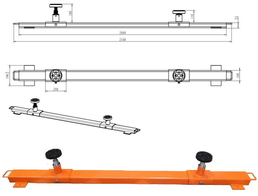 Винтовые опоры для регулировки требуемой высоты подхвата, резиновые опорные подушки.