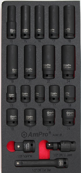 Приобрести A5618 Набор ударных головок 1/2" 21 предмет в мягком ложементе от компании AmPro (Тайвань) из раздела Ложементы мягкие (VA серия)