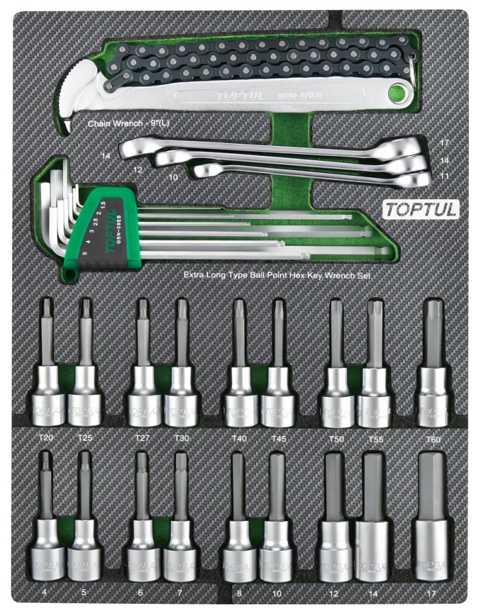 Набор торцевых насадок, шестигранники Г-образные и разрезные ключи, 31 пр. в мягком ложементе TOPTUL GEB3109 купить в Казани и других городах России