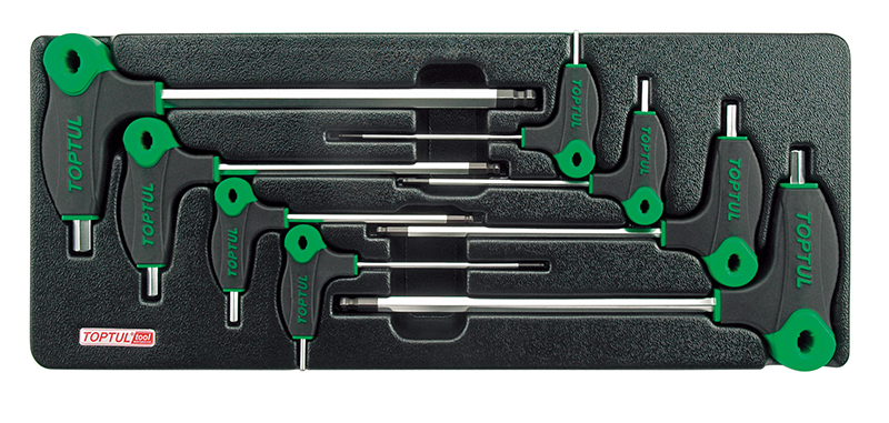 Набор шестигранных отверток с L-образной ручкой 2-10 мм с шаром 8 предметов в ложементе TOPTUL