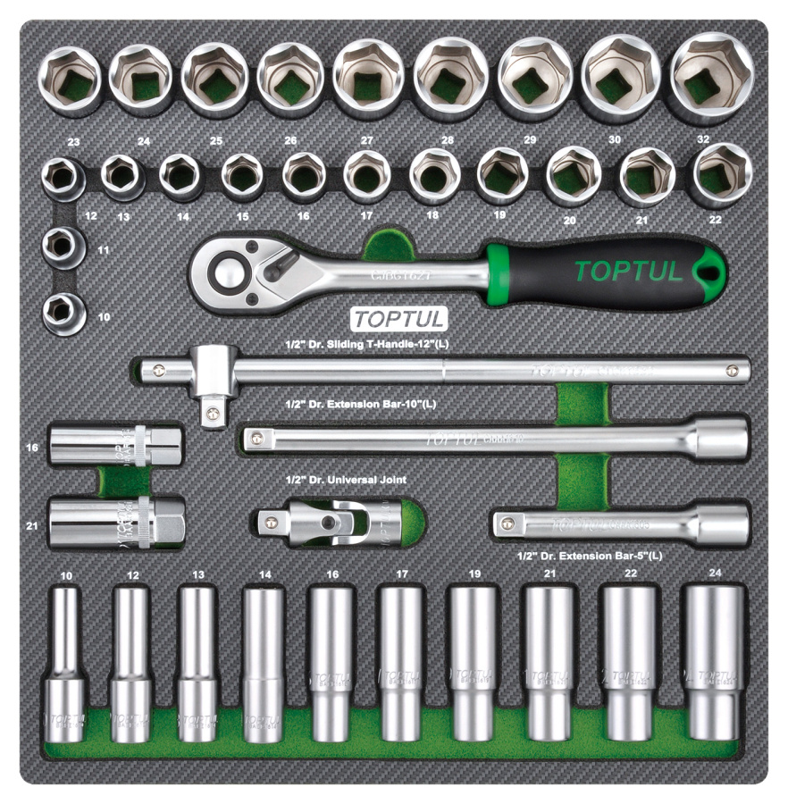 Набор головок и аксессуаров 1/2", 39 пр. в мягком ложементе TOPTUL GEC3901 купить в Казани и других городах России