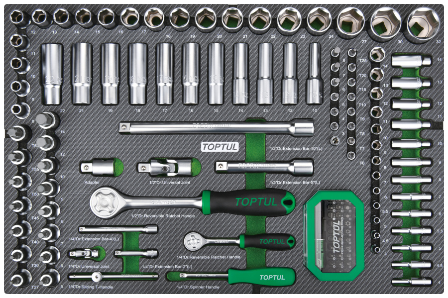 Набор головок и аксессуаров 1/4" и 1/2" 6-гр.,133 пр. в мягком ложементе TOPTUL GEDD348 купить в Казани и других городах России