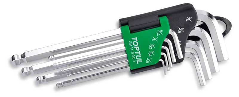 Приобрести Набор шестигранников Г-образных дюймовых 1/16"-3/8", 9 предметов TOPTUL от компании Toptul (Тайвань) из раздела Шестигранные Г-образные ключи по цене 1 753 рублей.