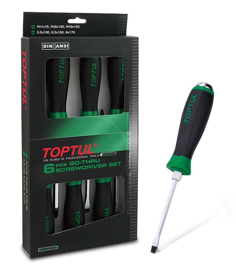 Набор отверток ударных (крест и шлиц) 6 предметов в картоне TOPTUL GAAE0613 купить в Казани и других городах России