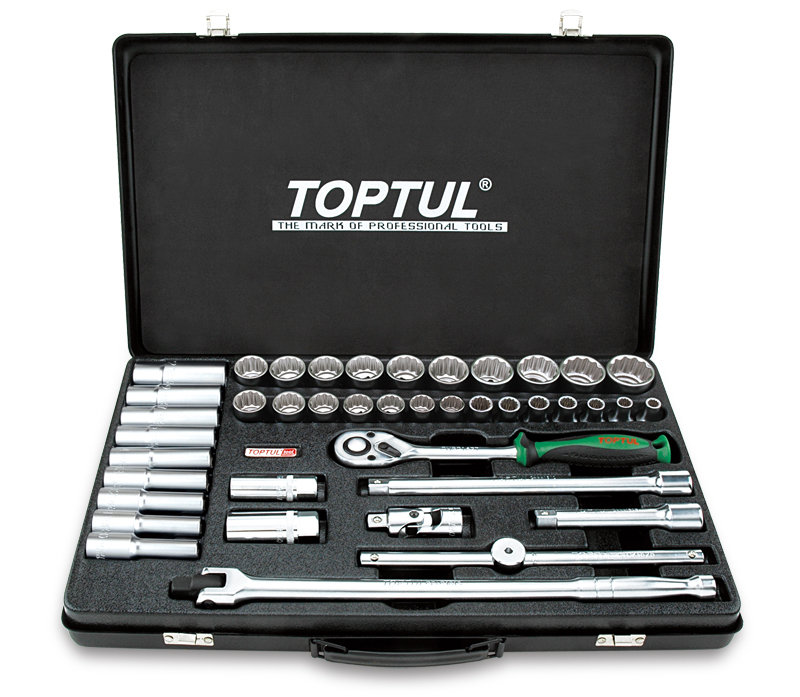 Набор головок и аксессуаров 1/2" 12-гранных 8-32 мм, 41 предмет в метал. кейсе TOPTUL GCAD4103 купить в Казани и других городах России