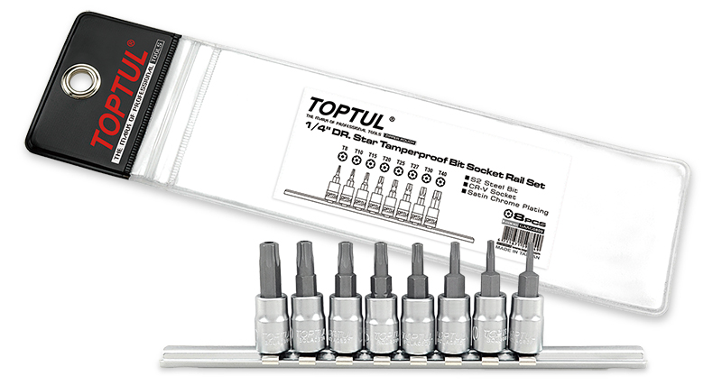Приобрести Набор торцевых головок 1/4" TORX с отверстием T8-T40 L=37 мм на планке 8 предметов TOPTUL от компании Toptul (Тайвань) из раздела Торцевые головки TORX T по цене 942 рублей.